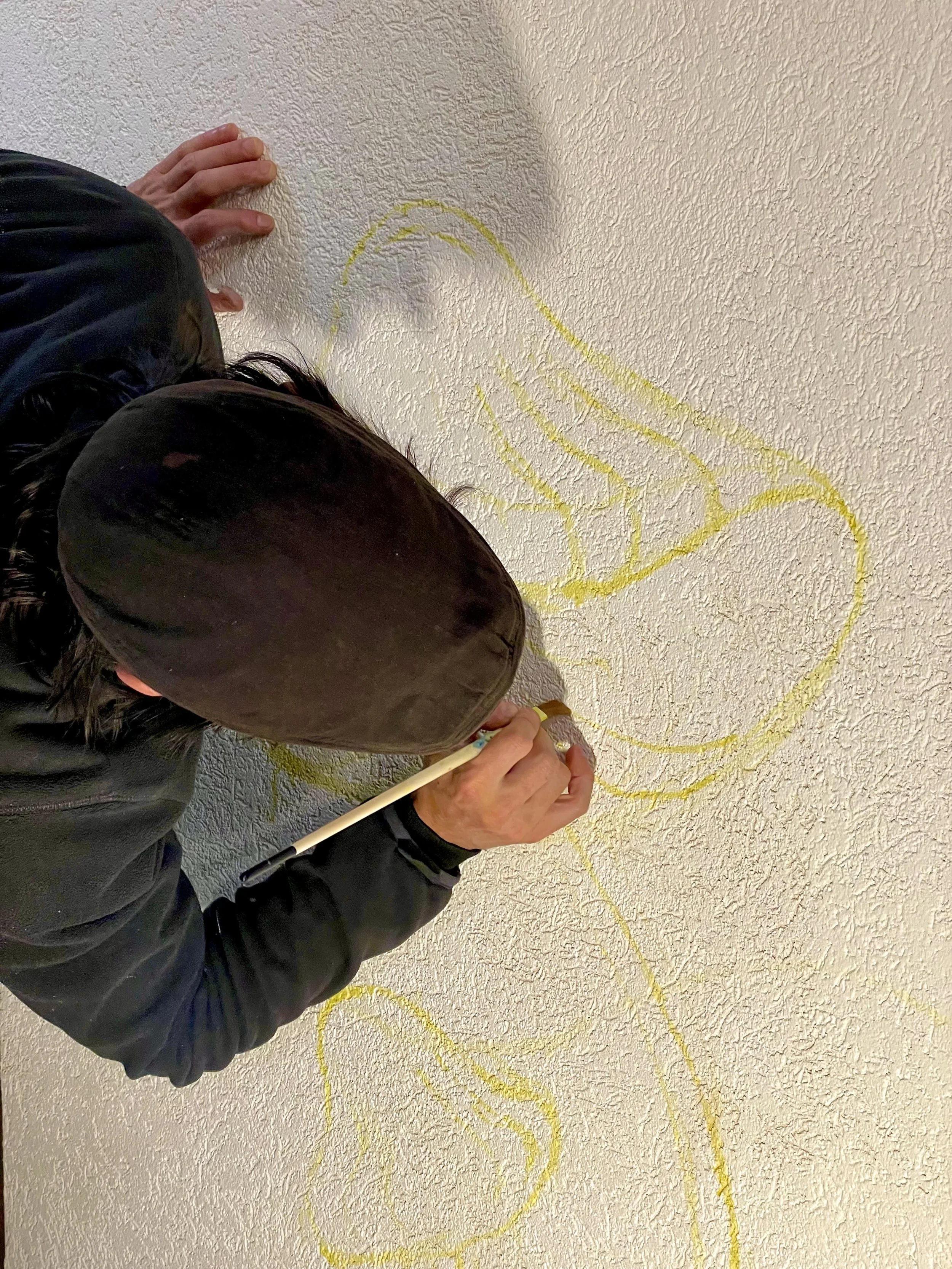 Los primeros dΓas estuvieron dedicados a preparar el espacio, organizar materiales y generar ideas. A travΓ©s de sesiones de brainstorming, el grupo explorΓ³ quΓ© historia podΓa reflejar el hostel y cΓ³mo el arte podΓa integrarse armoniosamente con el entorno alpino.